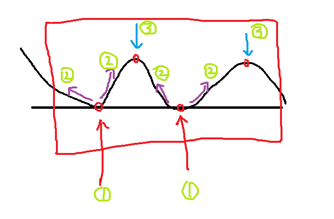 第三步:找到局部最高点,就是图中3位置对应的两个点。