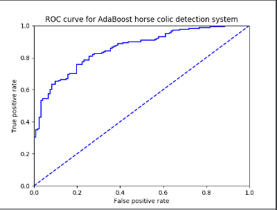 plt.title('ROC curve for AdaBoost horse colic detection system')