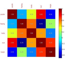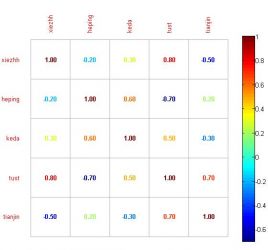 计算好了所有品种的相关性的数值,可能我们还需要进行一些图形展示,毕竟图形的东西传递的信息更多更直观,这里可以采用我们论坛(MATLAB技术论坛)谢老师matrixplot函数来实现,matrixplot.m函数源码如下: