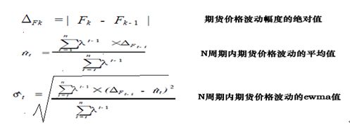 期货价格预测的主要过程是将期货价格的波动方差和价格波动幅度分别代入Ewma模型,其主要计算公式为: