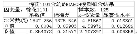 表一、棉花1101合约的Garch模型拟合结果