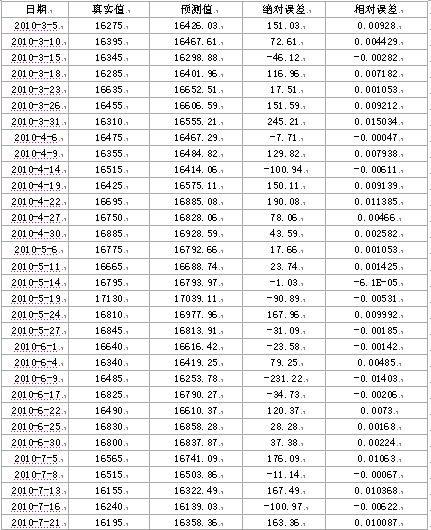 下表给出了部分棉花期货合约1101的预测值的结果;