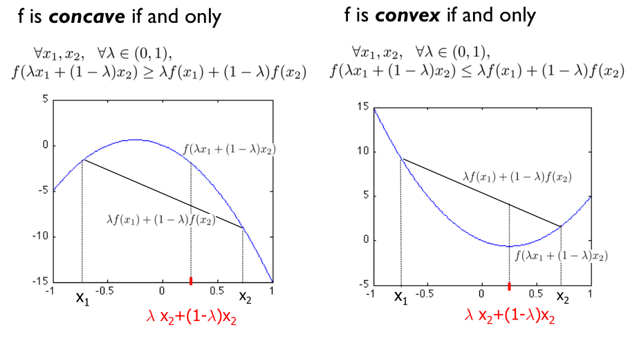 凹函数(concave)与凸函数(convex)的定义如图所示:
