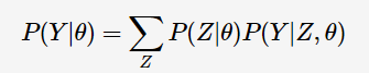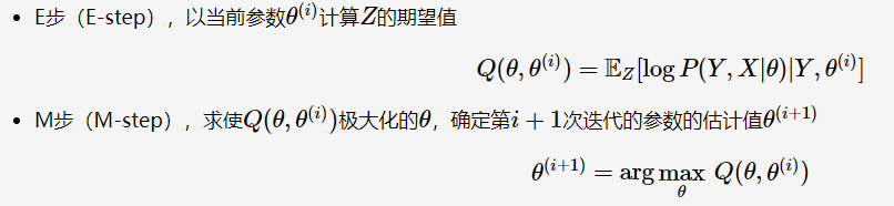 用Y表示观测数据,Z表示隐变量;Y和Z连在一起称为完全数据( complete-data ),观测数据Y又称为不完全数据(incomplete-data)。观测数据的似然函数: