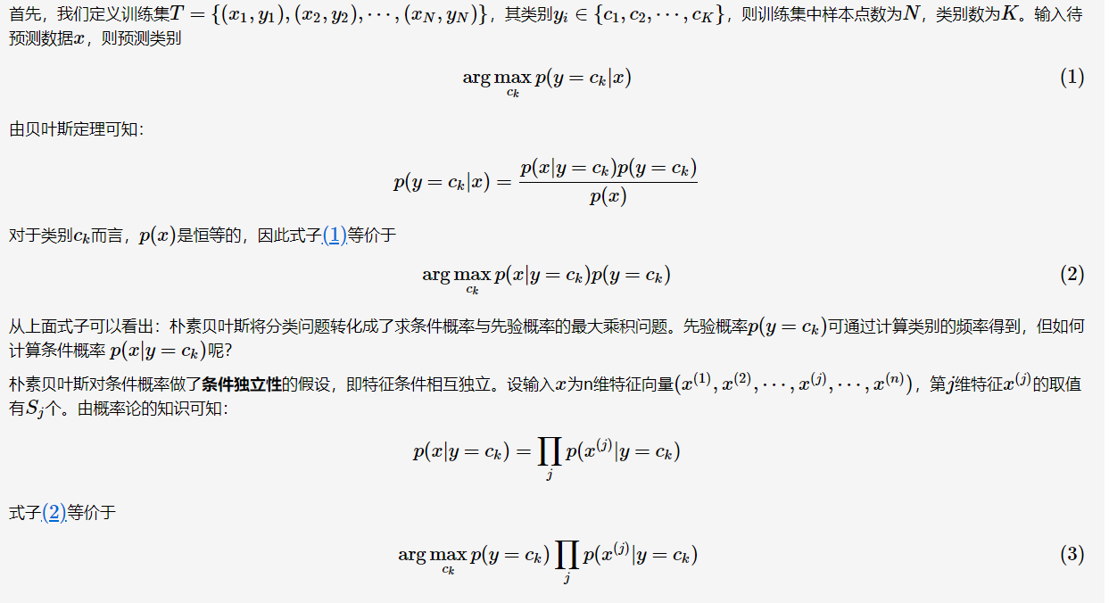 朴素贝叶斯分类器的主要思路:通过联合概率P(x,y)=P(x|y)P(y)建模,运用贝叶斯定理求解后验概率P(y|x);将后验概率最大者对应的的类别作为预测类别。