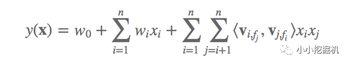 在FFM中,每一维特征 xi,针对其它特征的每一种field fj,都会学习一个隐向量 v_i,fj。因此,隐向量不仅与特征相关,也与field相关。也就是说,“Day=26/11/15”这个特征与“Country”特征和“Ad_type"特征进行关联的时候使用不同的隐向量,这与“Country”和“Ad_type”的内在差异相符,也是FFM中“field-aware”的由来。假设样本的 n个特征属于 f个field,那么FFM的二次项有 nf个隐向量。而在FM模型中,每一维特征的隐向量只有一个。FM可以看作FFM的特例,是把所有特征都归属到一个field时的FFM模型。根据FFM的field敏感特性,可以导出其模型方程。