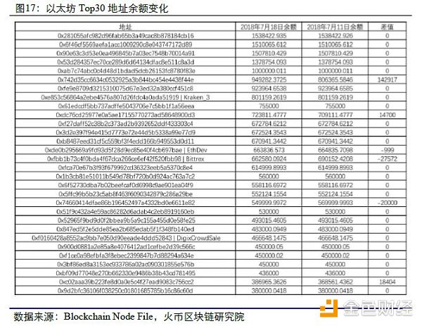 本周新增数据:比特币Top30地址余额变化,以太坊Top30地址余额变化。