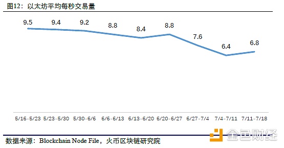 本周以太坊的平均每秒交易量为6.8, 较上周上升6.3%,终止了连续两周的下降,但仍处于近两个月低点。