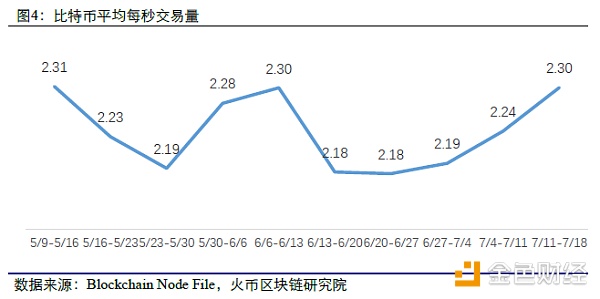 本周比特币平均每秒交易量为2.3笔,相对上周有所上升,并连续四周上升。