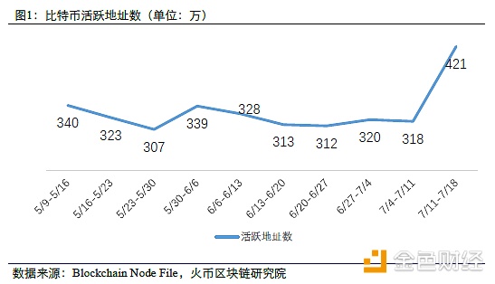 本周比特币活跃地址数巨幅增加,由上周的318万个增加至421万个,增幅32.4%。