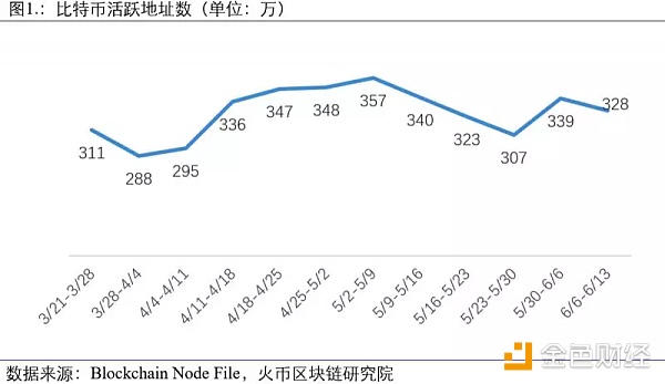 本周比特币活跃地址数相较上周略有下降,由上周的339万个下降到328万个。
