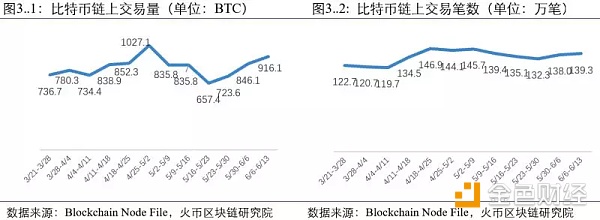 比特币链上交易量较上周上升:交易量已连续上升三周,本周交易量为916.1个BTC,相较上周的846.1个BTC上升了8.3%。本周链上交易笔数为139.3万笔,比上周的138万笔略有提升。