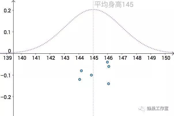 网上有个不错的例子,地球人的平均身高,这个值是真实存在的,假设为145cm,但没人知道,也不能把所有人都量一次身高,然后求平均值,那么只能从各大洲按照人口比例、男女比例、年龄分布等条件抽样,组成一个地球人代表团,可以计算这个代表团的平均身高(下图每个蓝点代表一个地球代表团),由代表团的平均身高代替地球人的平均身高。由于存在抽样误差,可能得到每次抽样的代表团的平均值不相同,但这些抽样的代表团的平均值曾正态分布。