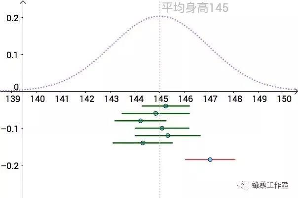 当然代表团平均值是一个具体值,可能与真实的地球人平均身高不同,如果根据代表团的身高计算出一个范围,这样就能包含了地球人平均身高,这个范围就是置信区间。