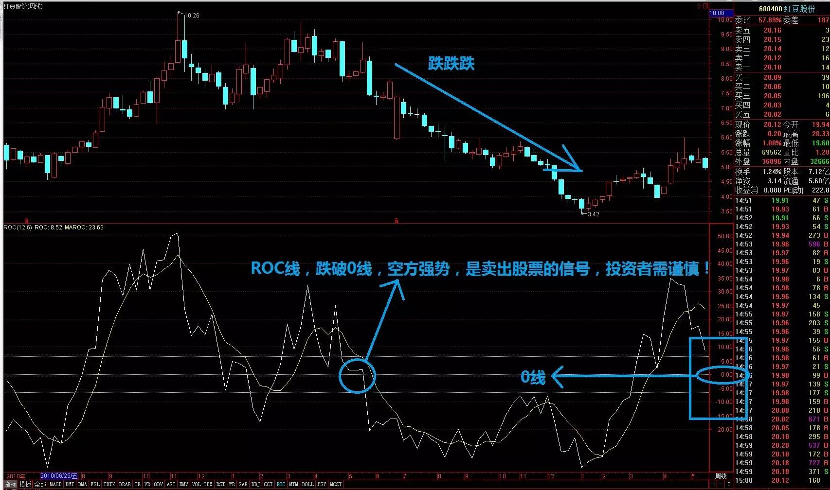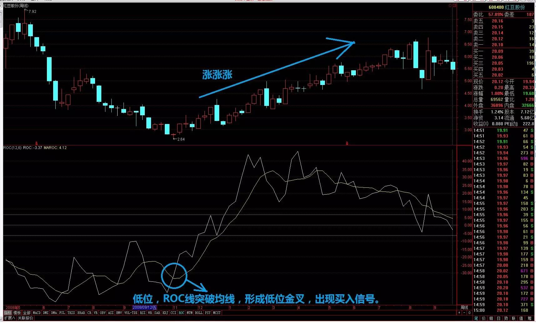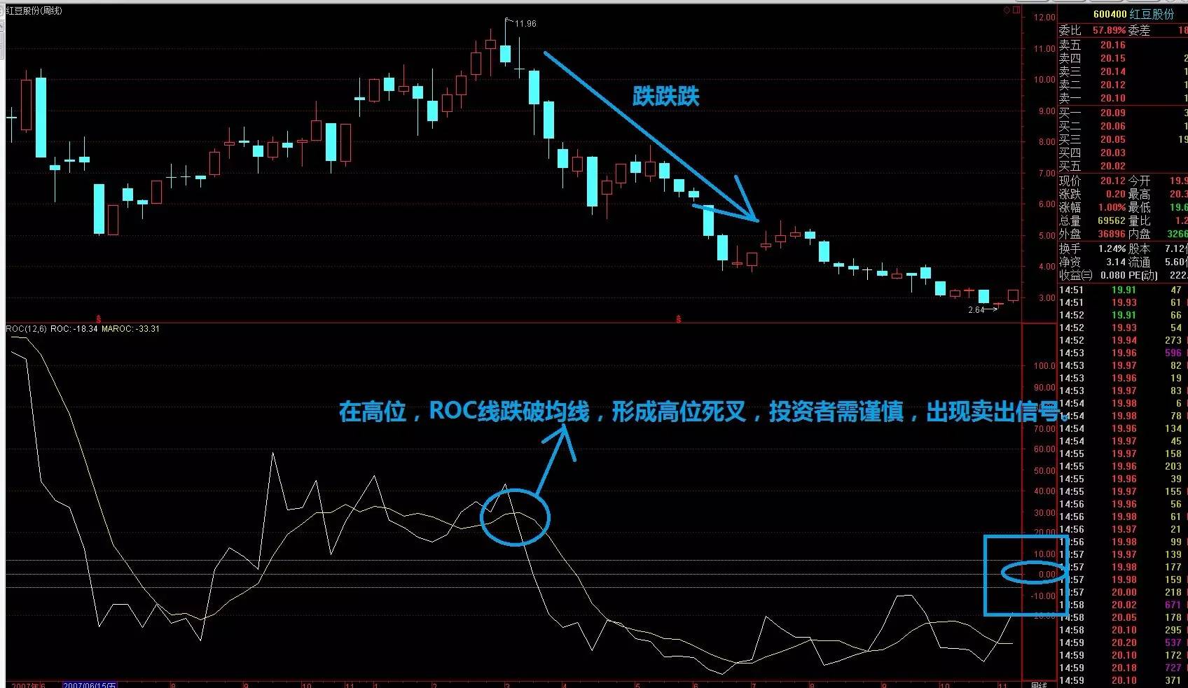 ROC指标升至20甚至更高的位置,说明股价短期内涨幅巨大,随时可能出现回落,而ROC指标的死叉则发出了具体的卖出信号,投资者需谨慎!