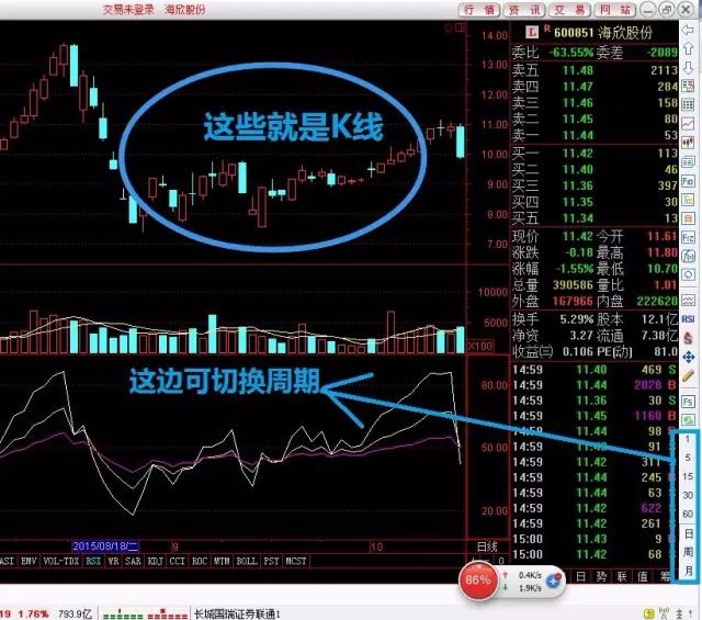 日K线,周K线,月K线,年K线,五分钟K线,15分钟K线,30分钟K线等等,这个周期在交易软件都可以由我们自己设置。波段操作一般会比较注重看短周期K线(比如5、30分钟K线),中长线操作一般会看日K线。
