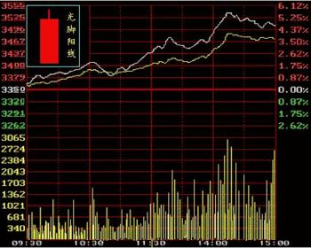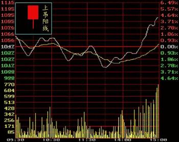 光头阳线若出现在低价位区域,在分时走势图上表现为股价探底后逐浪走高且成交量同时放大,预示为一轮上升行情的开始。如果出现在上升行情途中,表明后市继续看好。