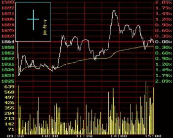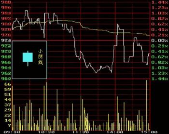 小阴星的分时走势图与小阳星相似,只是收盘价格略低于开盘价格。表明行情疲软,发展方向不明。