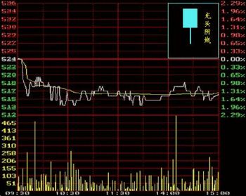 4、下面以带有成交量的分时走势图,分别说明数种典型的单个日K线图的形成过程和不同含义。分时走势图记录了股价的全天走势,不同的走势形成了不同种类的K线,而同一种K线却因股价走势不同而各具不同的含义。