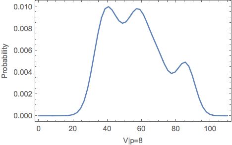 这样,当你在实时数据中观测到一个p的值时,就可以得出对应的V值的条件概率密度函数,即上图的一个切面,比如(p = 8):