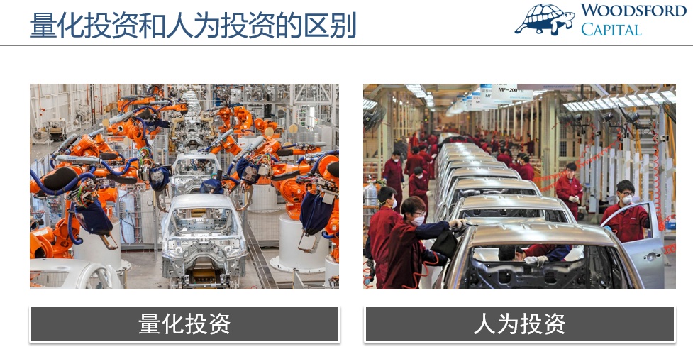 我们可以把投资活动想象成汽车工厂里装配汽车的过程。量化投资,就好比一间全自动装配车间,所有的装配工作都是由机器完成的。而人为投资,则好比比较传统化的汽车装配车间,绝大部分的装配工作还是需要工人来完成。