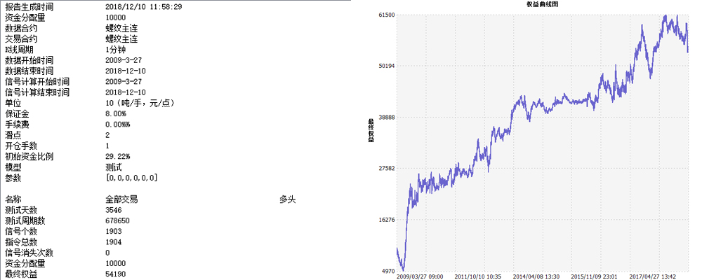 本策略尤其适合小周期K线数据,在5分钟以下K线级别,都有非常不错的回测绩效。并且策略核心参数较少,避免过度优化。由于策略属于开盘价策略,所以难免会有频繁开平仓现象,造成交易次数过多,因此受到手续费和滑点的影响比较大。