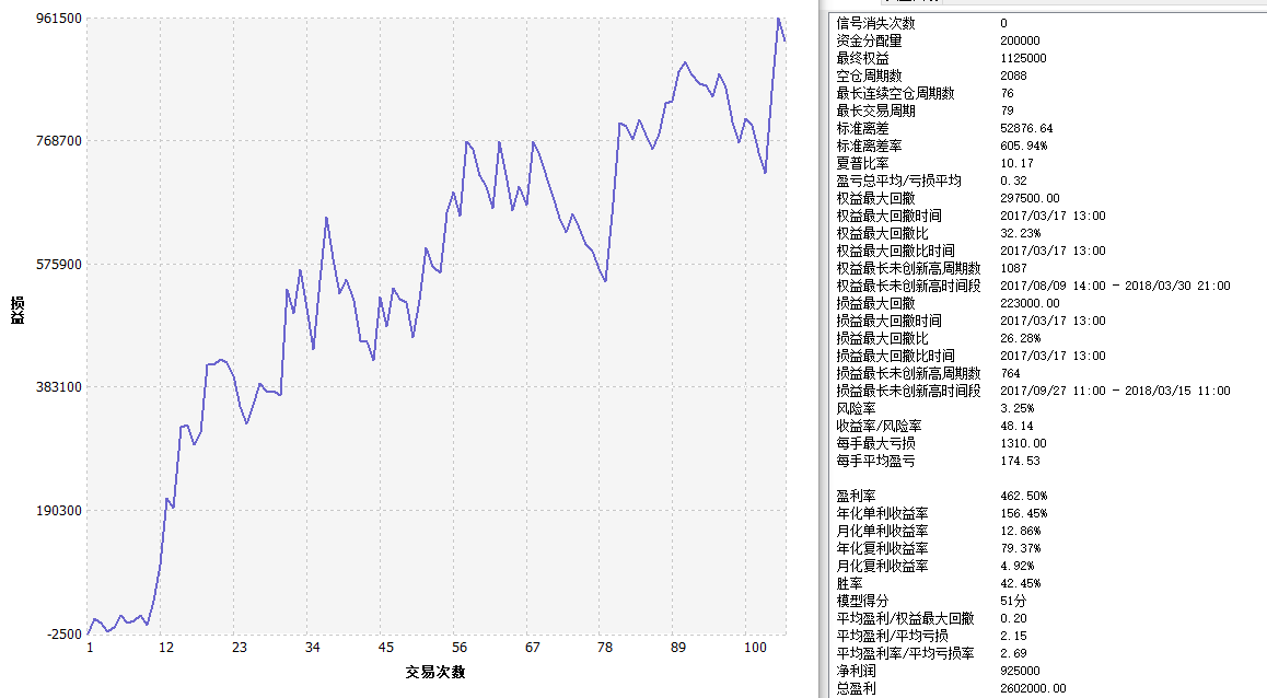 | 最大持续亏损次数出现时间 | 2017/12/11 21:00 - 2018/01/11 22:00 | ||