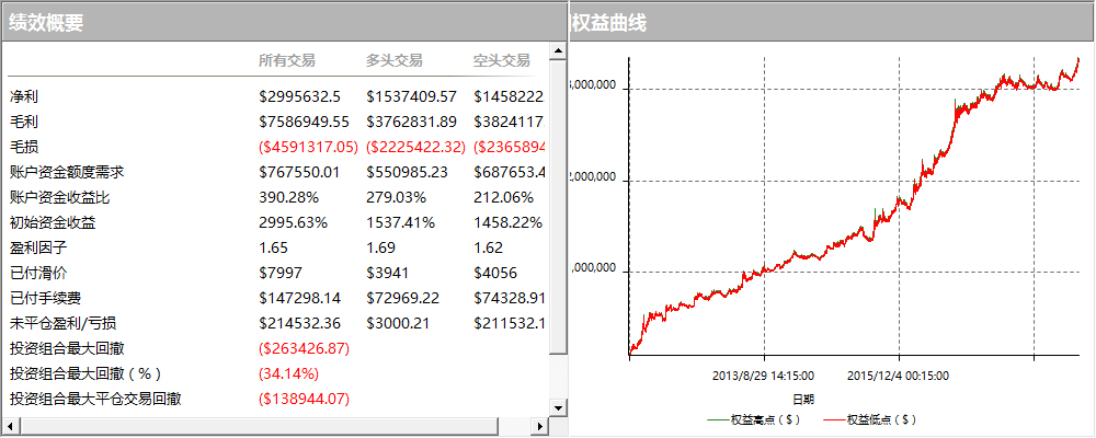 本期分享一个瀑布线趋势策略。所谓的瀑布线是由均线系统优化得来的趋势性指标,因其在运行的过程中,形态与瀑布极其相似,故得名为瀑布线,它的真正名称叫做非线性加权移动平均线。本策略进场条件是瀑布线多头排列,加上收盘价过滤,同时进场点也是反向出场点。出场规则是以短期趋势反转出场,或者趋势转向出场。