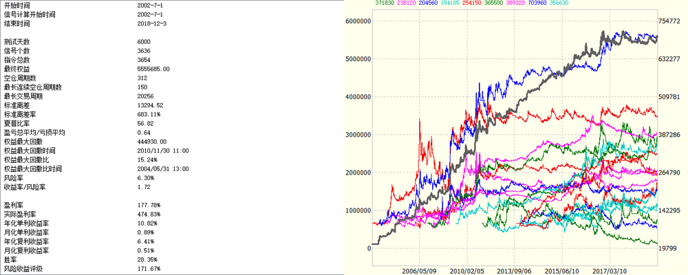 本期分享一个瀑布线PUBU策略。所谓的瀑布线是由均线系统优化得来的趋势性指标,它的真正名称叫做非线性加权移动平均线。因其形态与瀑布极其相似,故得名为瀑布线。本策略进场条件是瀑布线多头排列,加上收盘价过滤,同时进场点也是反向出场点。出场规则是以短期趋势反转出场,或者趋势转向出场。