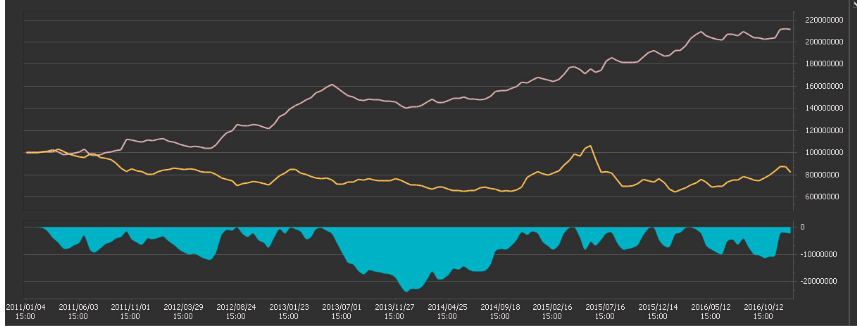 在获得BIAS指标的数值后,反趋势加日内策略。BIAS小于-2,做多;BIAS大于2,做空。反手出场。
