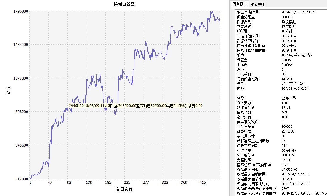| 最大持续盈利次数出现时间 | 2016/04/13 14:15 - 2016/04/29 14:30 | ||