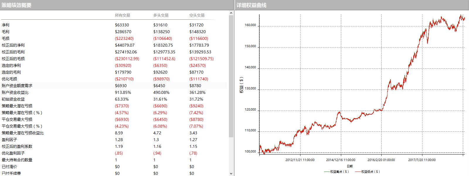 该交易策略是收盘价高于上轨作为强势看涨信号,或收盘价低于下轨作为强烈看跌信号,并配合价格与之相对关系,买入或卖出。