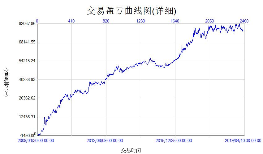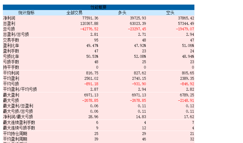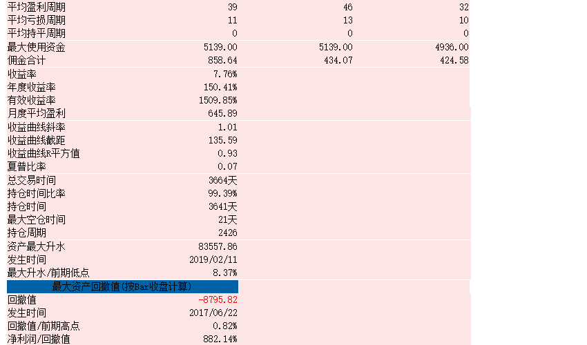 同时在策略逻辑上,这也是一个一直持仓的反手策略,即:非空即多。当价格升破上轨时就是买入信号;反之,当价格跌破下轨时就是卖出信号。但是因为上轨和下轨是用最高价和最低价计算出来的,所以价格很少同时上穿和下穿上下轨道,多数是在其轨道之间运动的,但是我们还是建议大家配合其他指标一起使用。